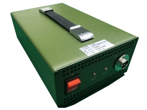 这款电源是一款集24V直流启动、装备供电等一体的便携式应急启动设备,在24V车辆等平台发动机组启动电瓶亏电的情况下,为其提供应急启动供电的设备。该电源应用于24V直流启动的普通军车、装甲车、坦克等,如:24V导弹发射车、轮式自行火炮、轮式步战车、火箭炮发射车、坦克运输车及其他24V军车和坦克车。