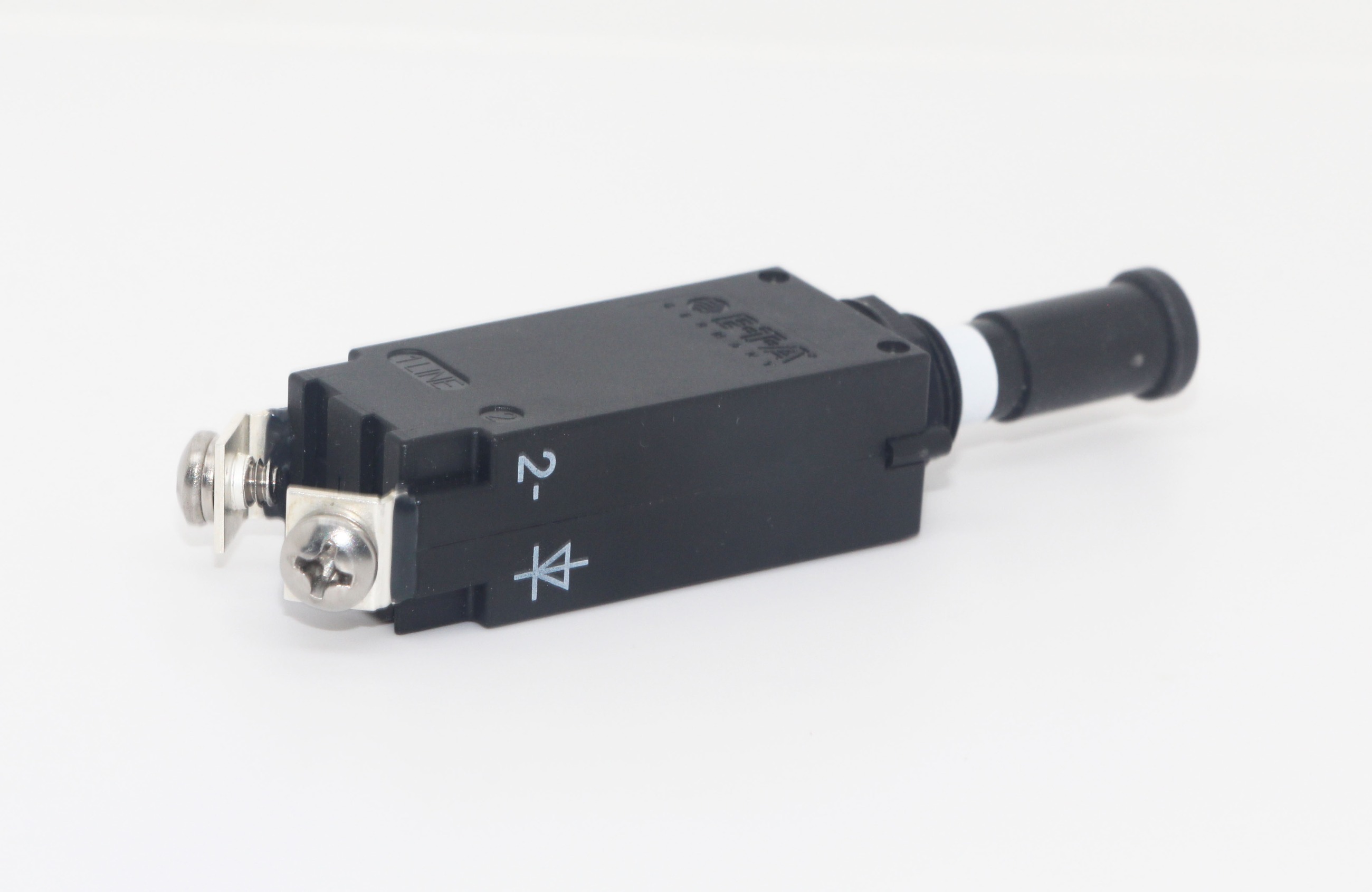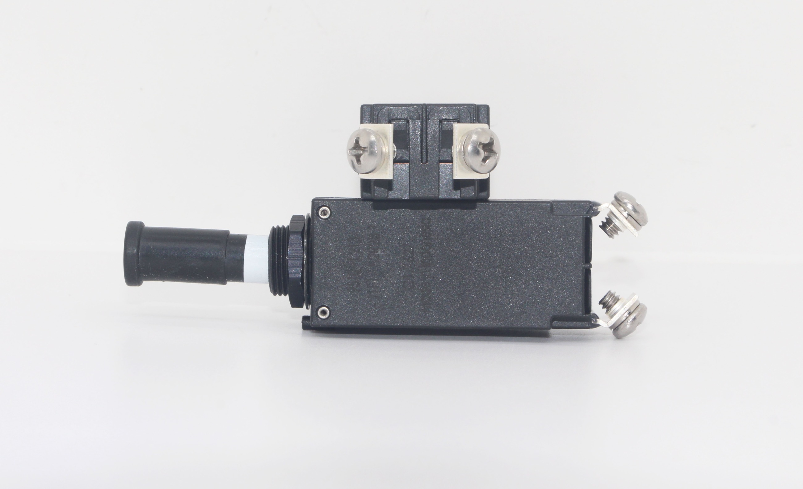单极微型飞机模拟器开关,磁跳闸时间极快。叶片、螺钉和线绕端子。飞机式螺纹颈和推/拉按钮,带白色跳闸指示环。根据客户要求,在按钮上用粘合标签或标记插入物标明电流额定值。